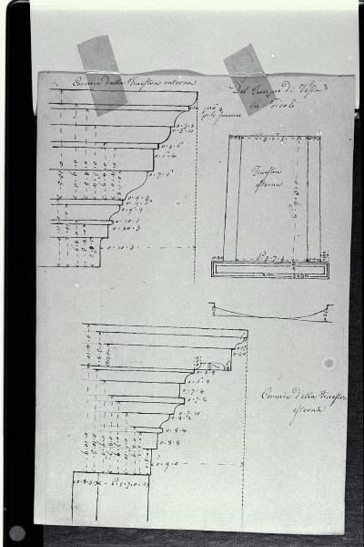 - NOTIZIE STORICO CRITICHE Relativamente al Tempio di Vesta in Tivoli, oltre a questo disegno Pollack ne ha eseguiti almeno altri sette, tutti minuziosamente quotati e relativi all'ordine architettonico e alle cornici di porte e finestre (Inv. A 1773, A 1754 r. e v., A 1767 r. e v., A 1759 r., A 1760 v.)