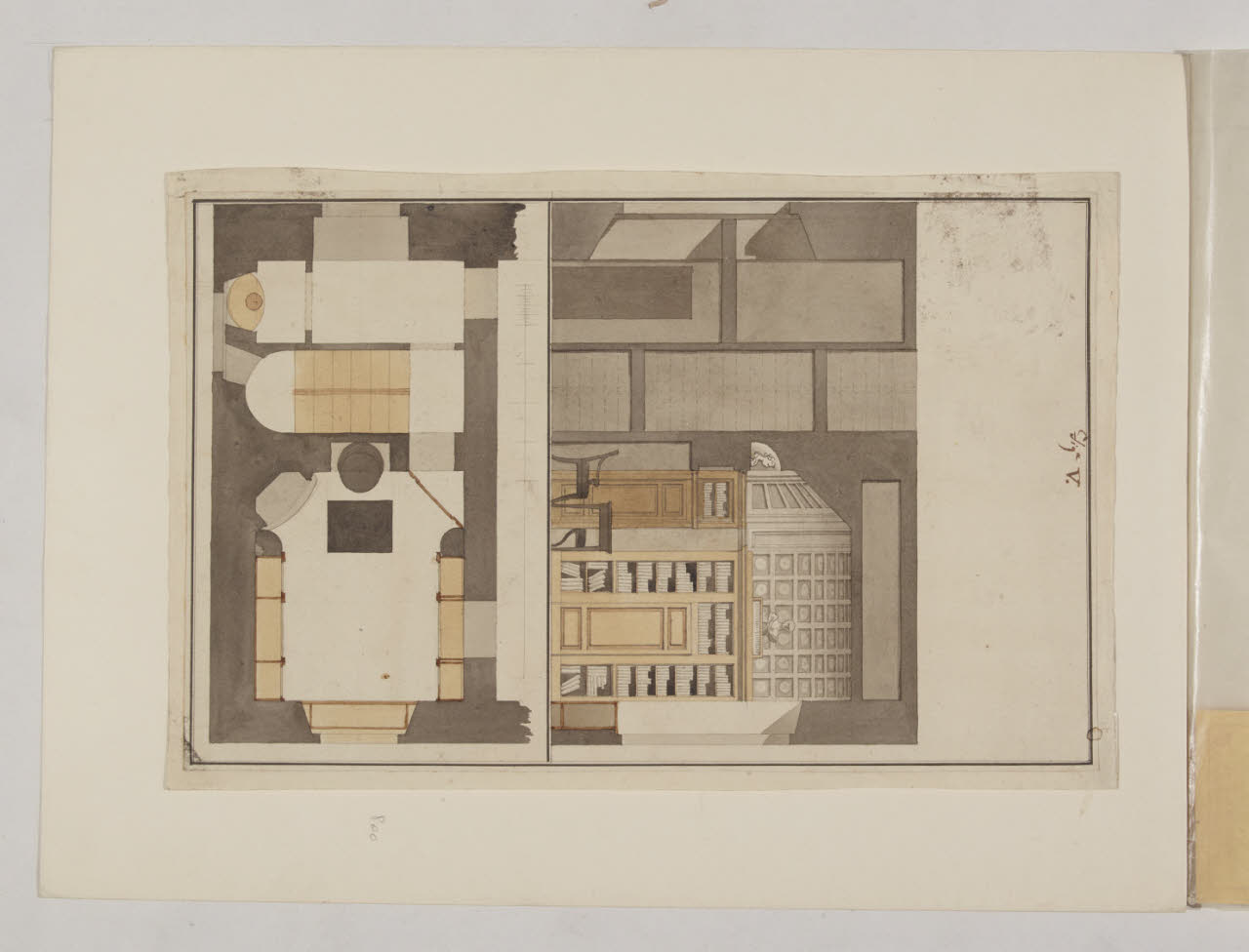 Pianta e sezione di uno studio e di un gabinetto di decenza