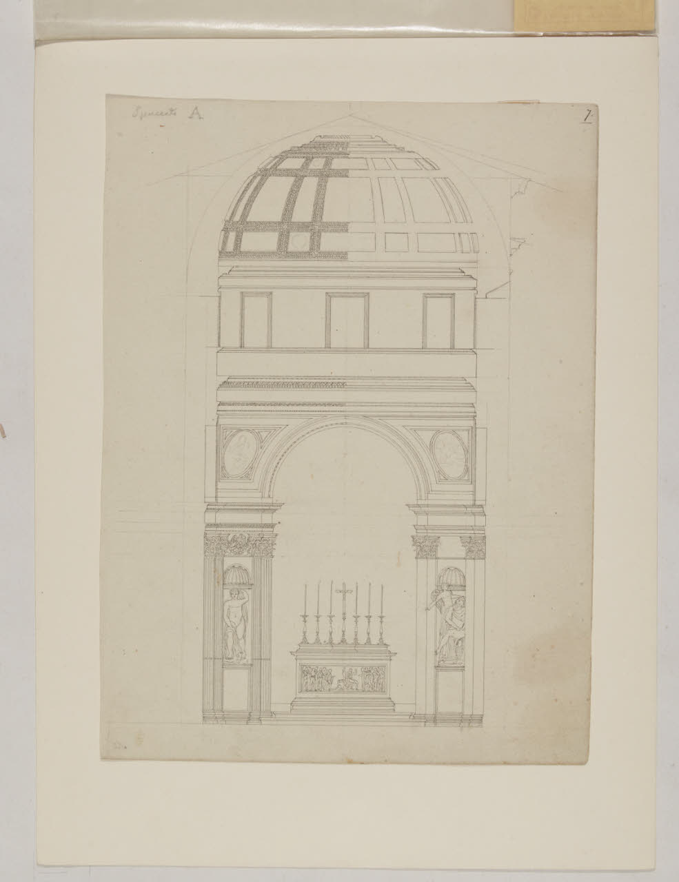 Spaccato A: Sezione trasversale con prospetto di altare della Cappella Chigi in S. Maria del Popolo