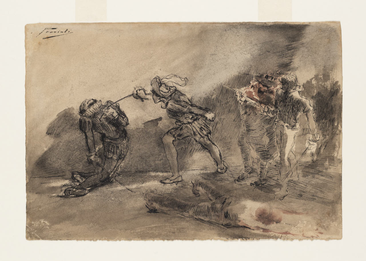 Il duello di padre Cristoforo - "A quella vista, Lodovico, come fuor di sé, cacciò la sua nel ventre del feritore". Illustrazione per i Promessi Sposi - Capitolo IV