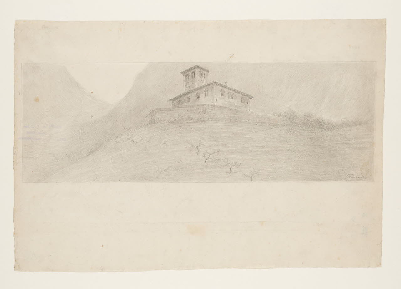 Il palazzotto di don Rodrigo - "(...) sorgeva isolato, a somiglianza d’una bicocca, sulla cima d’uno de’ poggi ond’è sparsa e rilevata quella costiera". Illustrazione per i Promessi Sposi - Capitolo V, intestazione