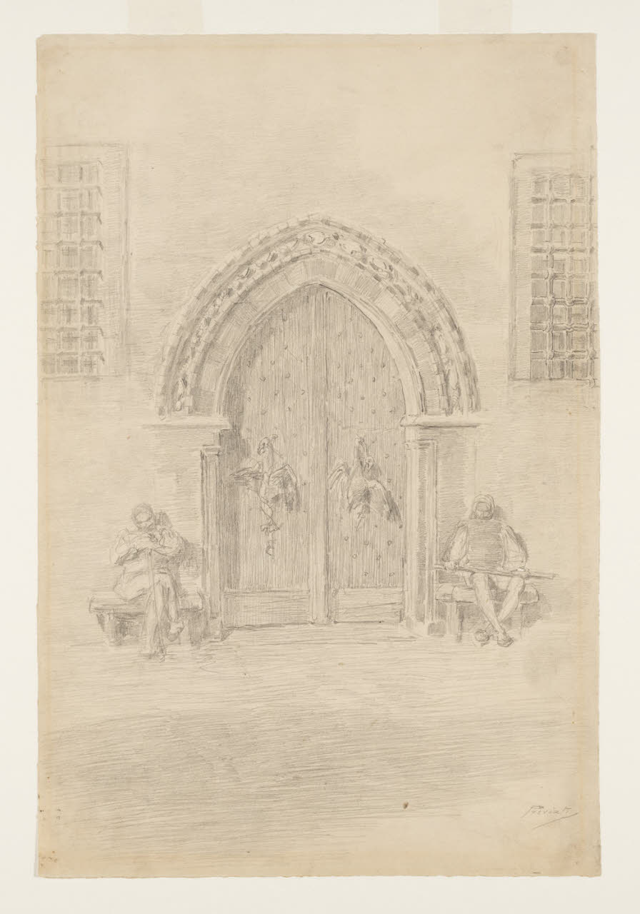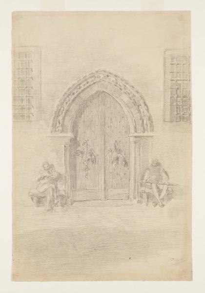 La porta del palazzotto di don Rodrigo - "La porta era chiusa, segno che il padrone stava desinando, e non voleva esser frastornato". Illustrazione per i Promessi Sposi - Capitolo V