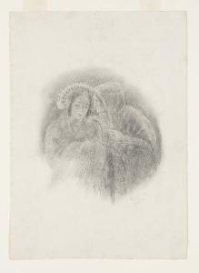 Il suggerimento di Agnese a Lucia - "(...) E Agnese ebbe appena tempo di sussurrare all'orecchio di Lucia: Bada bene, ve', di non dirgli nulla". Illustrazione per i Promessi Sposi - Capitolo IV, finale di capitolo