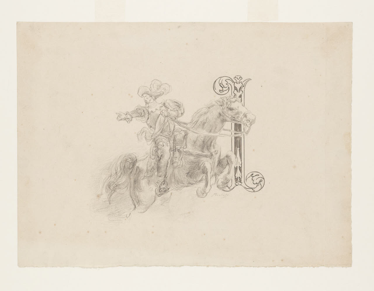 matita; penna e acquarellature di inchiostro di china per l'iniziale su carta bianca
