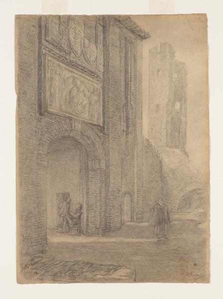 Porta di Monza - "Fiancheggiata allora da un antico torracchione mezzo rovinato, e da un pezzo di castellaccio, diroccato anch’esso". Illustrazione per i Promessi Sposi - Capitolo IX