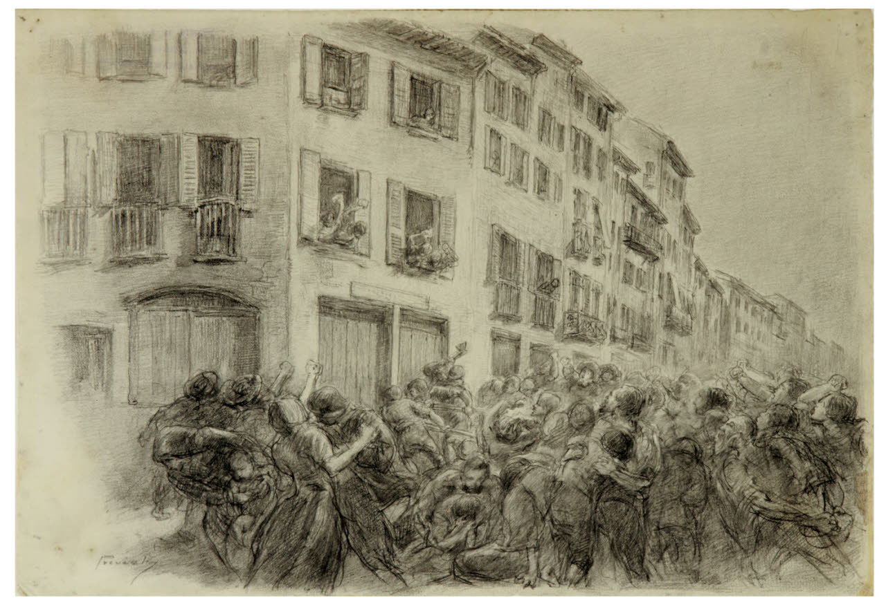 L'assalto al forno - "È questo il pane, che date alla povera gente? (...) Ora, ora! s'urlava di giù.". Illustrazione per i Promessi Sposi - Capitolo XII