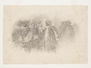 Renzo tra la folla - "Dunque mi dicano un poco, signori miei, se hanno mai visto uno di questi col muso all'inferriata". Illustrazione per i Promessi Sposi - Capitolo XIV