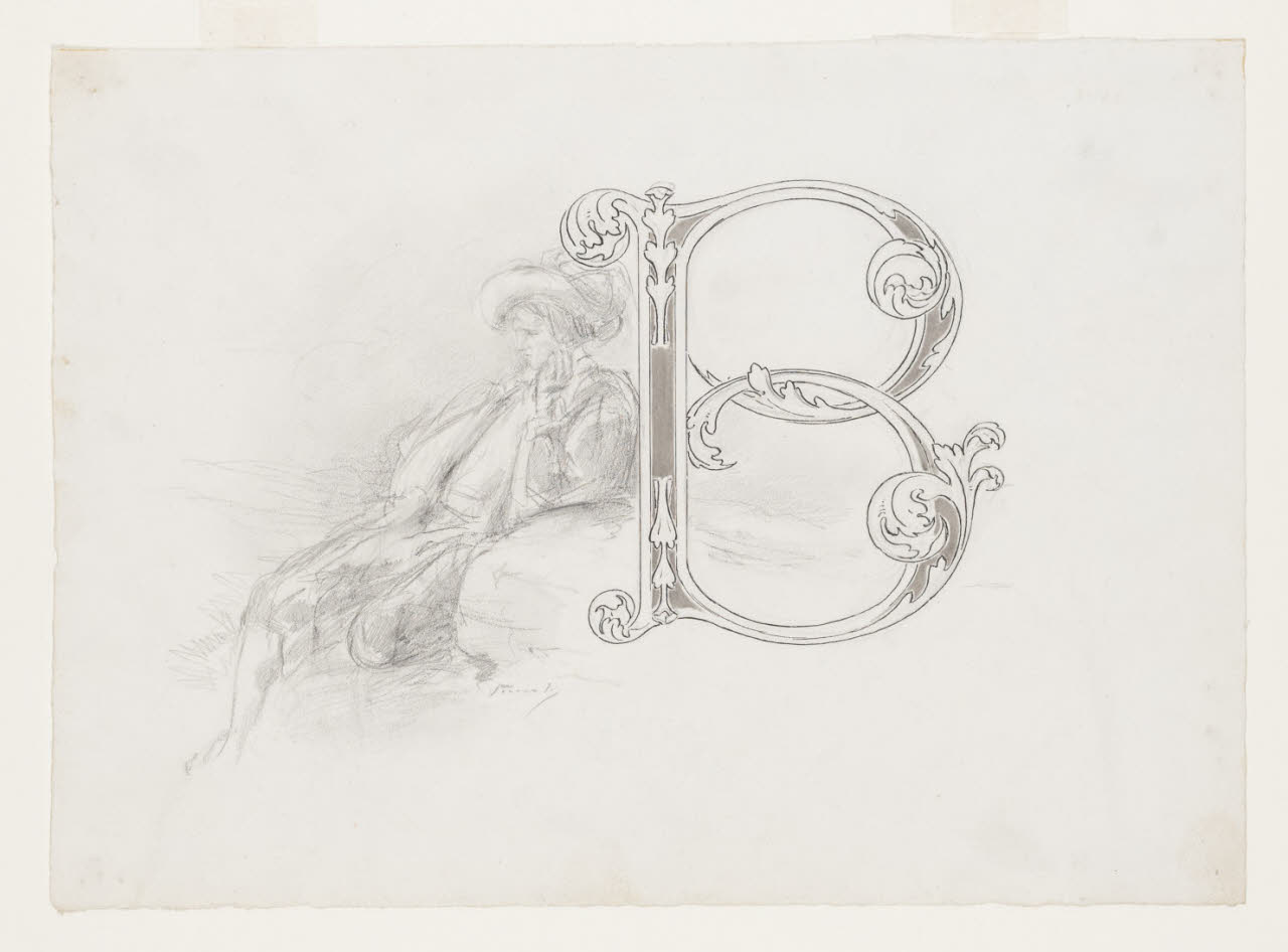 matita; penna eacquarellature di inchiostro di china per l'iniziale su carta bianca
