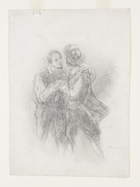 Renzo e Bortolo - "Un oh! di sorpresa, un alzar di braccia, un gettarsele al collo scambievolmente". Illustrazione per i Promessi Sposi - Capitolo XVII, finale di capitolo