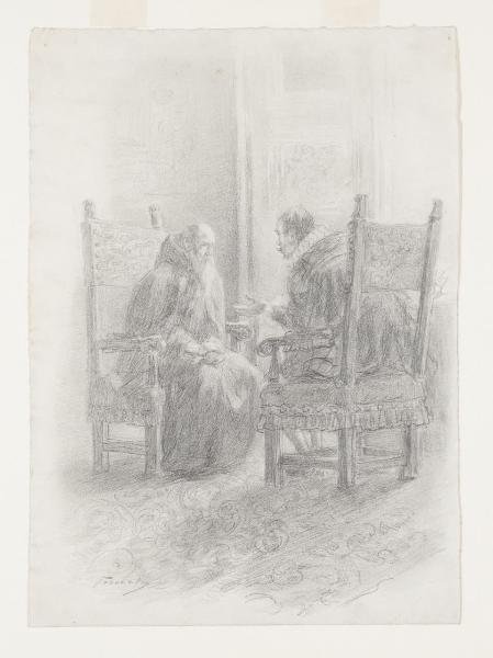 Conversazione tra il padre provinciale e il conte zio - "E' un passo e non è un passo, padre molto reverendo". Illustrazione per i Promessi Sposi - Capitolo XIX