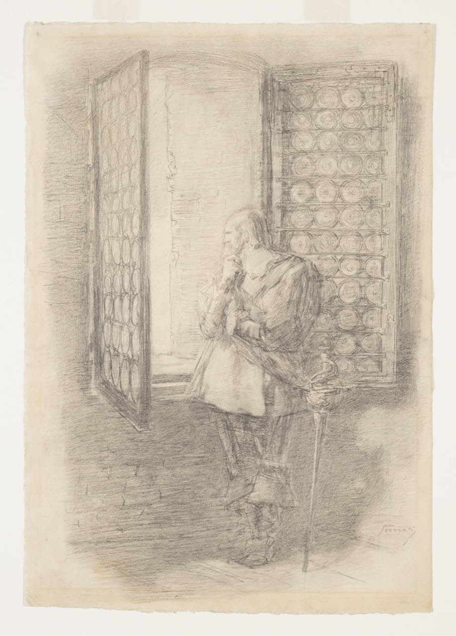 L'innominato guarda fuori dalla finestra - "Dall'alto del castellaccio, come l'aquila dal suo nido insanguinato". Illustrazione per i Promessi Sposi - Capitolo XX