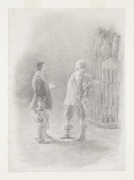 Don Rodrigo a colloquio con l'innominato - "Disse che veniva per consiglio e per aiuto". Illustrazione per i Promessi Sposi - Capitolo XX