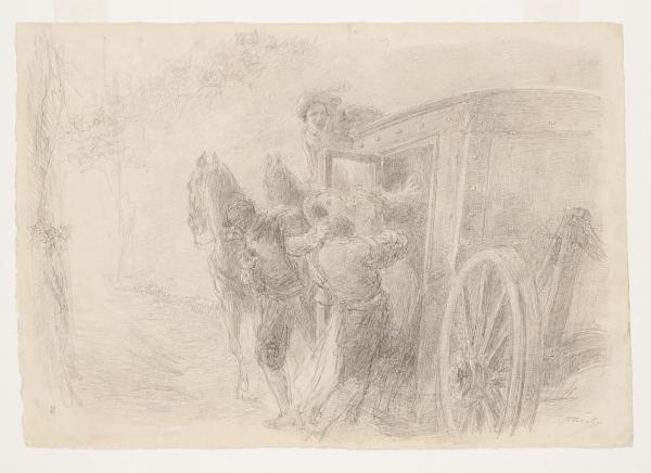 Il rapimento di Lucia - " il Nibbio, afferrandola d’improvviso per la vita, l’alzò da terra. Lucia (...) cacciò un urlo". Illustrazione per i Promessi Sposi