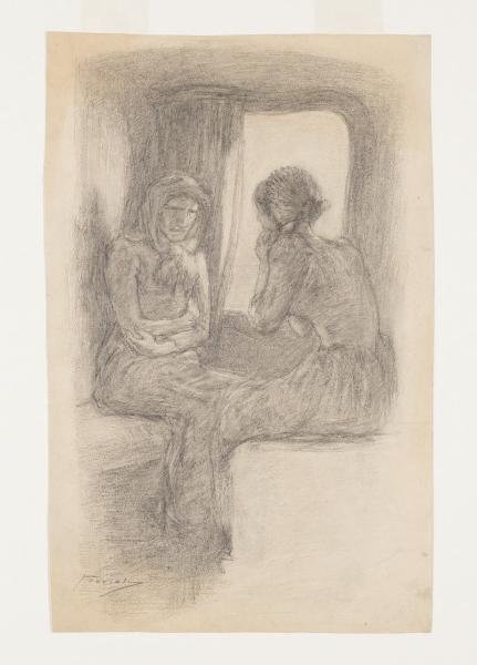 Lucia nella bussola con la vecchia - "Dite a costoro che mi lascino andare (...). Oh! voi che siete una donna". Illustrazione per i Promessi Sposi - Capitolo XXI