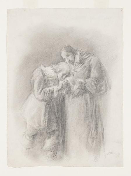 Il pianto dell'innominato, dopo l'abbraccio del cardinal Federigo - "(...) Si coprì il viso con le mani, e diede in un dirotto pianto". Illustrazione per i Promessi Sposi - Capitolo XXIII