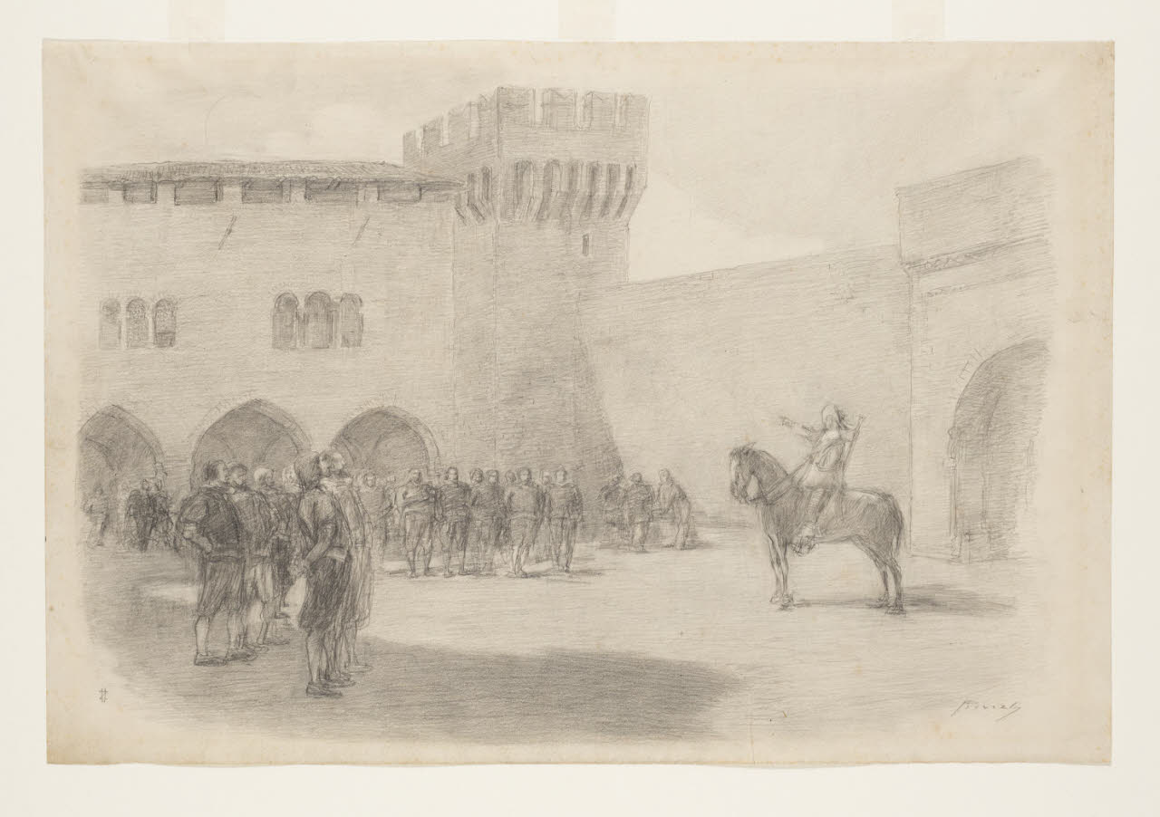 L'innominato raduna i suoi bravi - "In un momento, quelli ch’erano sparsi per il castello, vennero dietro alla voce". Illustrazione per i Promessi Sposi - Capitolo XXIV