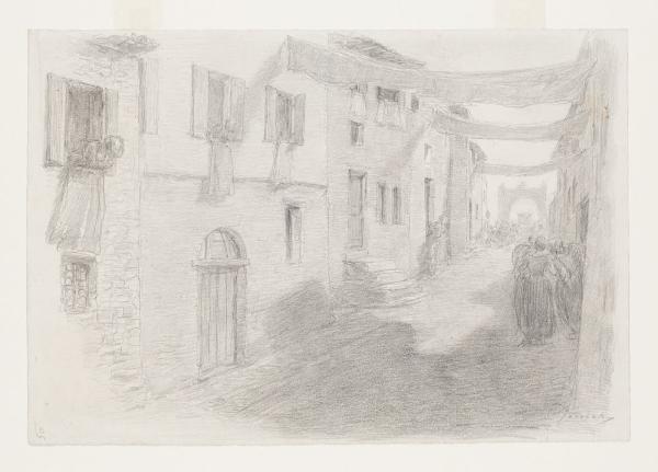 Il paese festeggia il cardinale - "Vecchi, donne e fanciulli la più parte, s’avviarono anche loro a incontrarlo, parte in fila, parte in truppa". Illustrazione per i Promessi Sposi - Capitolo XXV