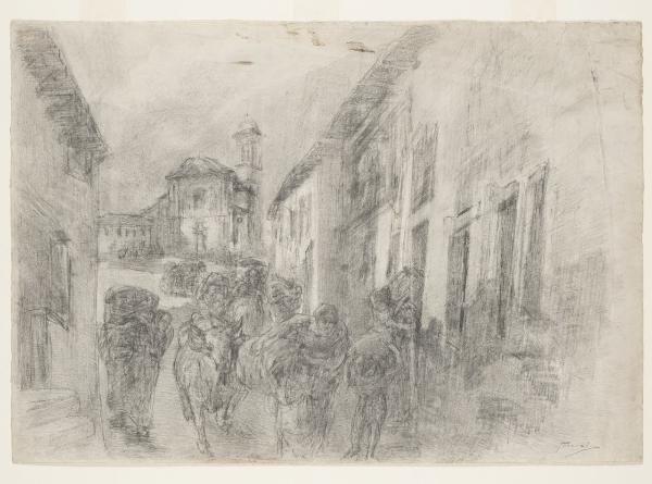 La fuga davanti alle truppe - "(...) uomini che passavano curvi sotto il peso della loro povera roba". Illustrazione per i Promessi Sposi - Capitolo XXIX
