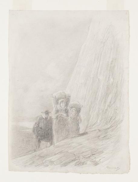 Don Abbondio sale al castello con le due donne - "(...) E s'incamminò con le due compagne per la salita". Illustrazione per i Promessi Sposi - Capitolo XXX