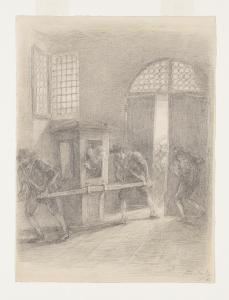 Il medico Lodovico Settala in visita ai malati - "I portantini vedendo la mala parata, ricoverarono il padrone in una casa d’amici". Illustrazione per i Promessi Sposi - Capitolo XXXI