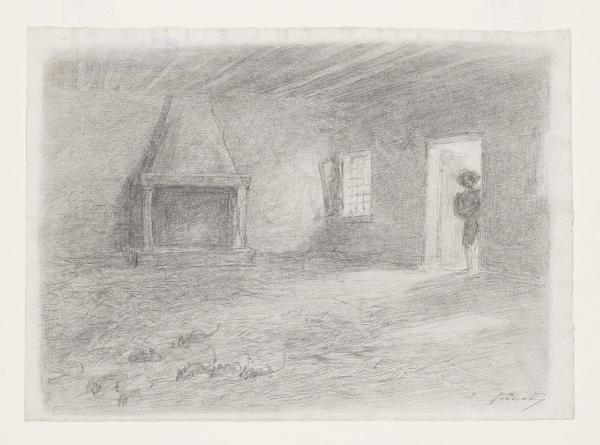 La casa di Renzo - "(...) Mise piede sulla soglia d'una delle due stanze che c'era a terreno". Illustrazione per i Promessi Sposi - Capitolo XXXIII