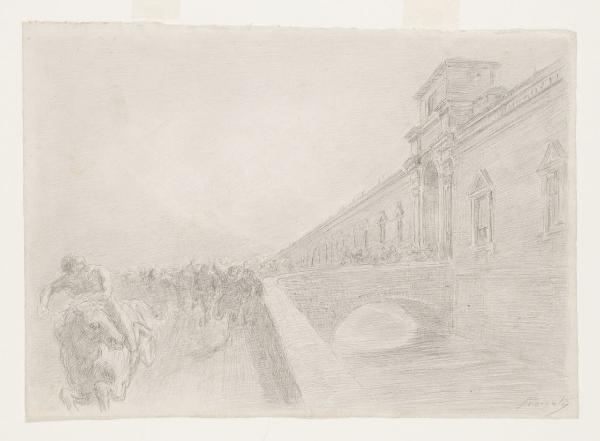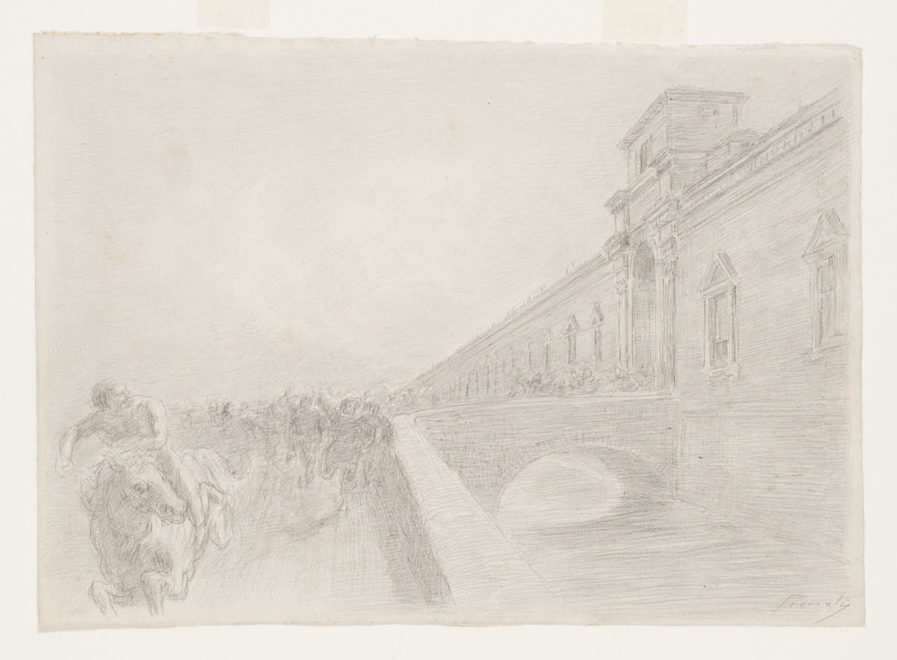 Pazzo che fugge sul cavallo - "Un cavallaccio che andava di carriera, spinto da un più strano cavaliere". Illustrazione per i Promessi Sposi - Capitolo XXXIV, finale di capitolo