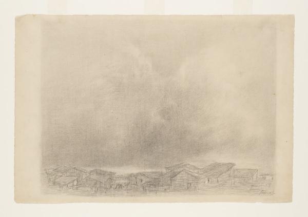 Le baracche del lazzaretto - "L'aria stessa ed il cielo accrescevan, se qualche cosa poteva accrescerlo, l'orrore di quelle viste". Illustrazione per i Promessi Sposi - Capitolo XXXV