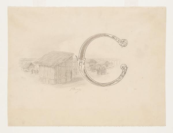 Lettera C - "Chi avrebbe mai detto a Renzo, qualche ora prima, che (...), il suo cuore sarebbe stato diviso tra Lucia e don Rodrigo?". Illustrazione per i Promessi Sposi - Capitolo XXXVI, iniziale