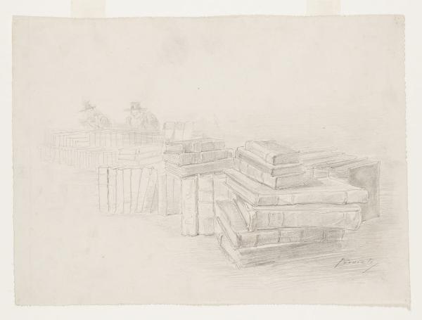 I libri di don Ferrante - "E quella sua famosa libreria? E' forse ancora dispersa su per i muricciuoli". Illustrazione per i Promessi Sposi - Capitolo XXXVII, finale di capitolo
