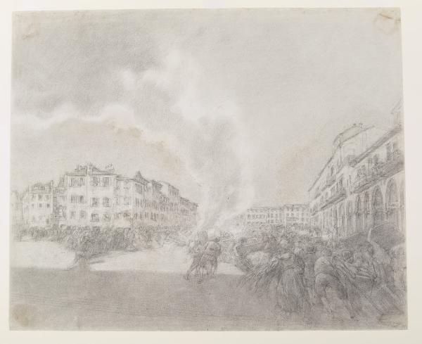 Il falò dei rivoltosi - "Il fumo cresce e s'addensa". Illustrazione per i Promessi Sposi - Capitolo XII