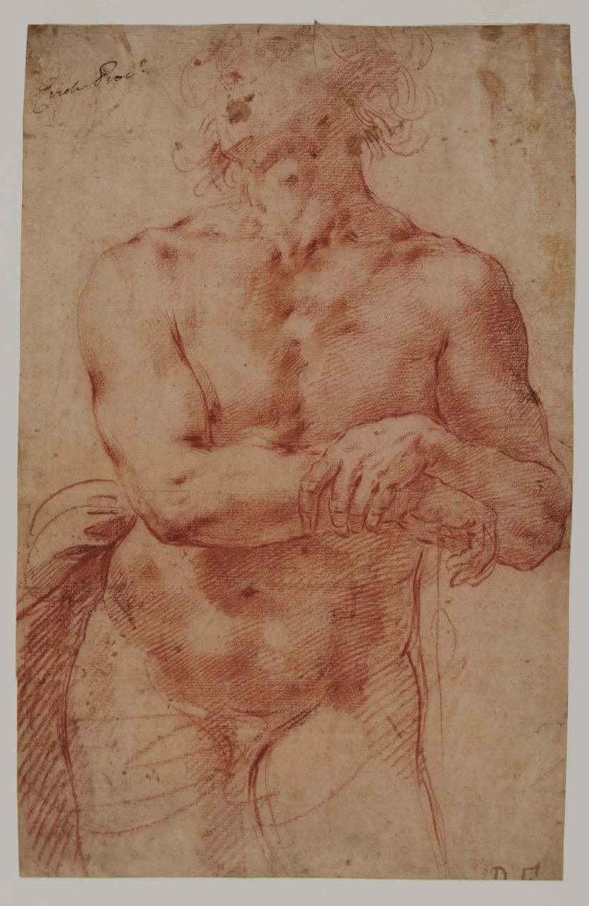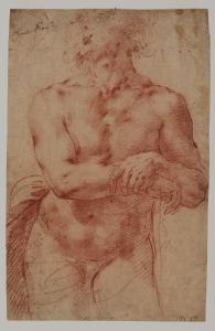 - NOTIZIE STORICO CRITICHE Il disegno, tipico esempio di accademia virile, è stato acquistato nel 1935 dalla collezione Trivulzio, ed è attribuito dalla Neilson (1992) a Ercole Procaccini il Giovane. Esso presenta, in basso a destra, un'iscrizione a pennello tagliata, simile a quella presente anche nell'opera inv. Au. C 733: "P. F". Il foglio presenta, al verso, un abbozzo a matita rossa di nudo virile di spalle.