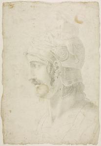 Testa di guerriero con elmo