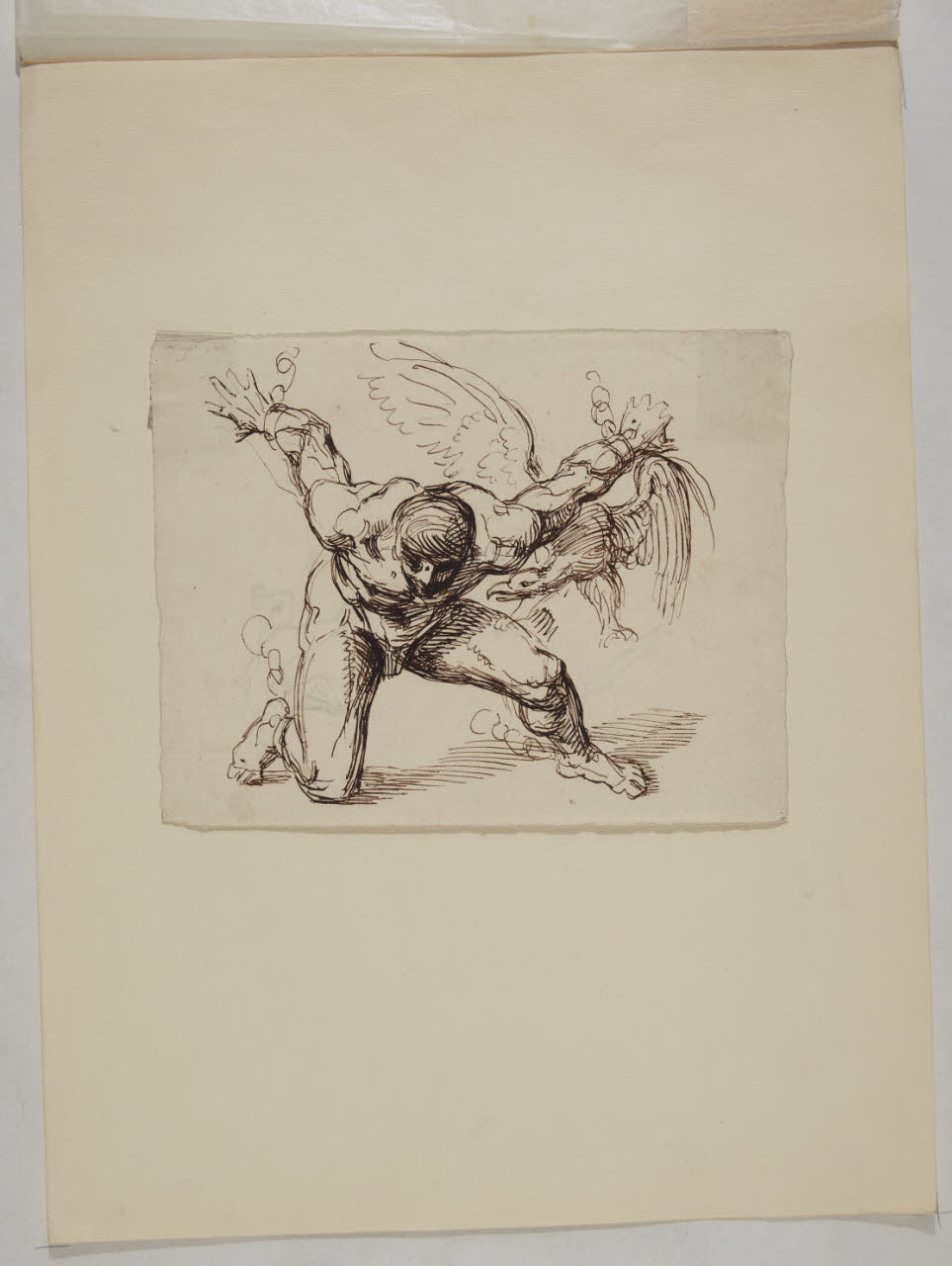 - NOTIZIE STORICO CRITICHE Lo studio potrebbe essere un bozzetto per gli affreschi di palazzo Mina Bolzesi a Cremona, abbandonato poi e sostituito con un'altra scena che vede protagonista sempre Prometeo.\n