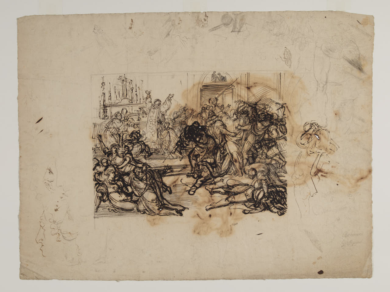 Studio per una scena religiosa (San Bernardo degli Uberti aggredito dagli eretici (?)) e schizzi di teste e figure
