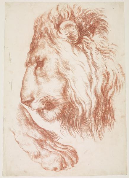 Studio di una testa di leone di profilo e di una zampa