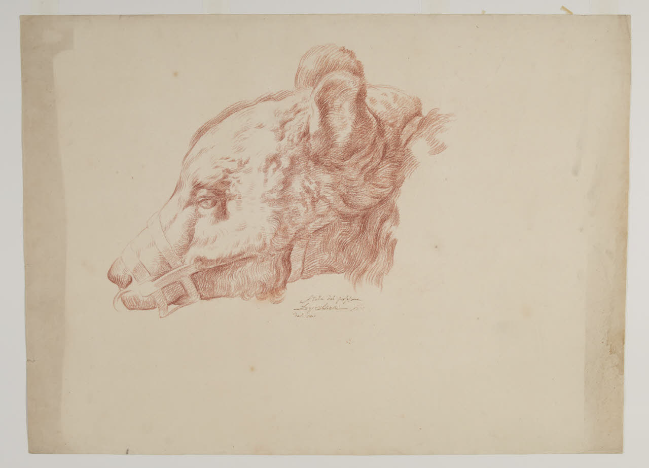 - NOTIZIE STORICO CRITICHE Studio dal vero che, verosimilmente, potrebbe essere correlato all'incisione "La visione di Daniele" del 1809, oppure al dipinto disperso del 1849 "La creazione degli animali".\nGli studi di animali di Luigi Sabatelli conservati presso il Gabinetto dei Disegni del Castello Sforzesco potrebbero essere riconducibili a delle copie dal vero realizzate dall'artista ritraendo gli animali che si trovavano nel Serraglio del Viceré, al tempo nel Castello Sforzesco di Milano. Questi schizzi furono probabilmente eseguiti come studi preparatori per la moltitudine di animali raffigurata nell'incisione "La visione di Daniele", di cui esiste un disegno preparatorio.