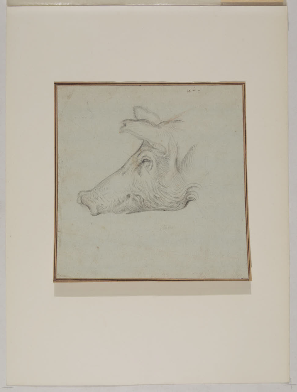 carta/ tracce di grafite/ carboncino/ controfondato/ bordatura a penna e inchiostro