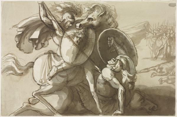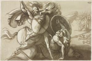 Scena di combattimento tra guerrieri
