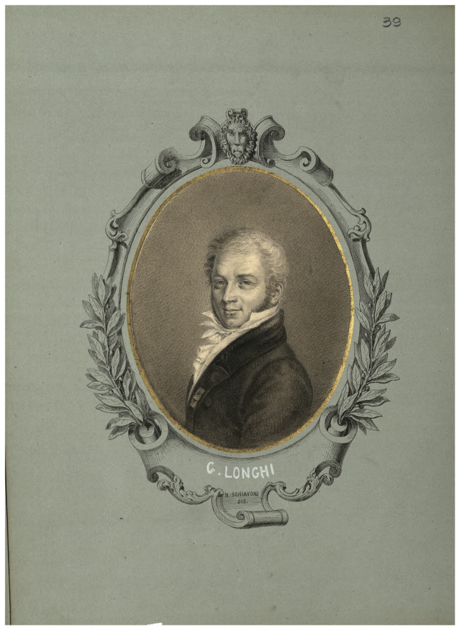 - NOTIZIE STORICO CRITICHE L'incisione derivata da questo disegno risulta tra i medaglioni che illustravano i "Cento ritratti di illustri italiani", Milano, Bettoni, 1825 (tav. 51). Chiaramente l'opera recepiva ritratti che erano stati commissionati dall'editore tempo prima, dato che comprende anche disegni di Giuseppe Bossi, morto nel 1815.\nOltre che disegnatore Schiavoni è anche l'incisore.