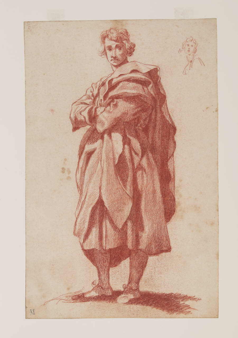 Figura virile panneggiata con studio di testa. Figura virile panneggiata con studio di testa