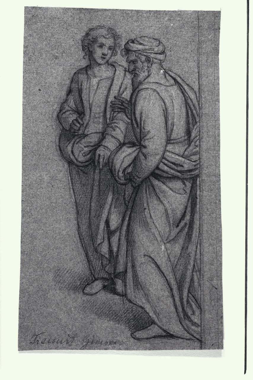 Studio di due figure maschili drappeggiate per una composizione di soggetto sacro