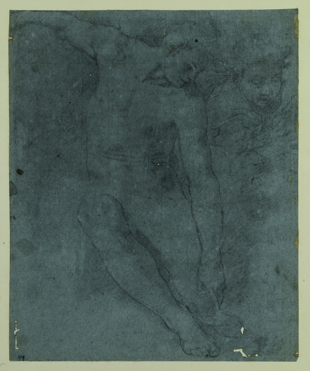 matita nera e sanguigna su carta azzurra quadrettata a matita nera