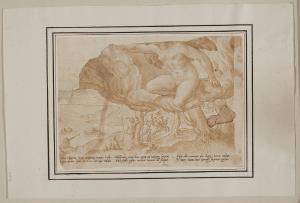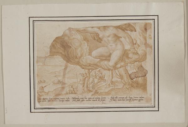 - NOTIZIE STORICO CRITICHE Già appartenuto alla collezione del Principe Alberico XII Barbiano di Belgioioso, questo foglio entrò nelle collezioni civiche nel 1943 per dono della famiglia Trivulzio. Si tratta di una copia a penna e pennello, nello stesso verso, dell'"Aurora che fuga la notte" incisa da Joannes I Sadeler su disegno di Theodor Barendszoon e pubblicata nel 1582. La perdita di un'ampia porzione della parte superiore del foglio ne inficia purtroppo oggi una lettura completa.