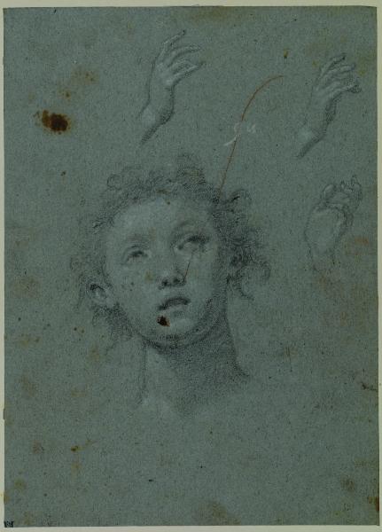 Testa di ragazzo e tre studi di mano sinistra. Testa di ragazzo e tre studi di mano sinistra