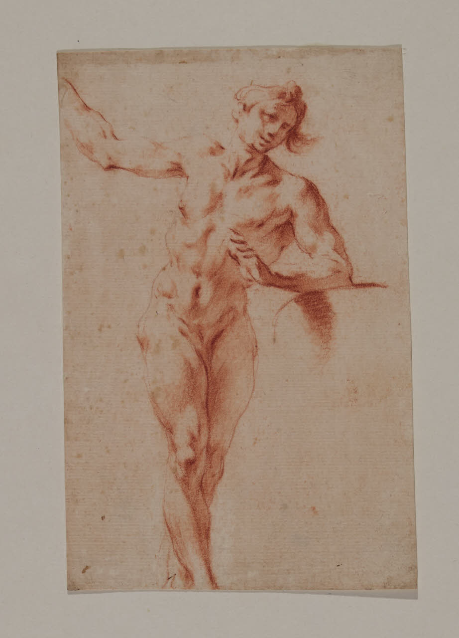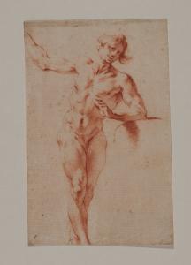 - NOTIZIE STORICO CRITICHE Il disegno in esame fa parte di un nucleo di cinquatuno fogli con Accademie virili a matita rossa, quasi tutti delle stesse dimensioni, pervenuti nelle civiche raccolte nel 1943 dalla raccolta Trivulzio. Già attribuiti ad anonimo del XVIII secolo nell'inventario museale, per questi disegni è stato avanzato, seppure in forma dubitativa, il nome di Federico Bencovich (1677-1753), autore di numerosi nudi d'accademia, la cui attività grafica resta tuttora oggetto di dibattito.
