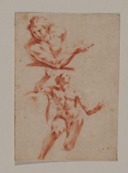 - NOTIZIE STORICO CRITICHE Il disegno in esame fa parte di un nucleo di cinquatuno fogli con Accademie virili a matita rossa, quasi tutti delle stesse dimensioni, pervenuti nelle civiche raccolte nel 1943 dalla raccolta Trivulzio. Già attribuiti ad anonimo del XVIII secolo nell'inventario museale, per questi disegni è stato avanzato, seppure in forma dubitativa, il nome di Federico Bencovich (1677-1753), autore di numerosi nudi d'accademia, la cui attività grafica resta tuttora oggetto di dibattito.