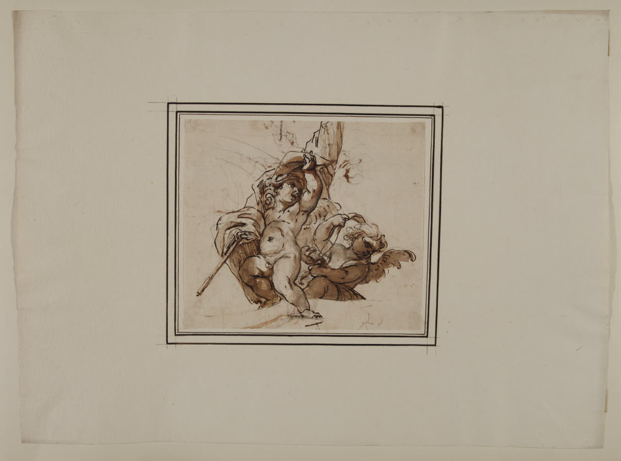 Due angioletti che reggono trofei militari