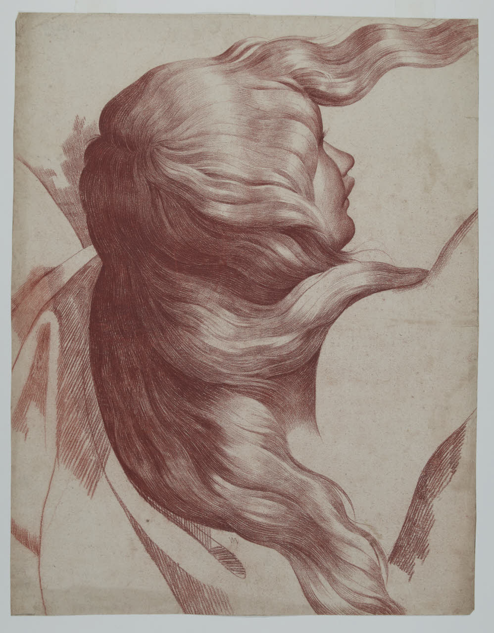 Donna con le braccia alzate vista da dietro (particolare dall'Incendio di Borgo). Studio di testa femminile