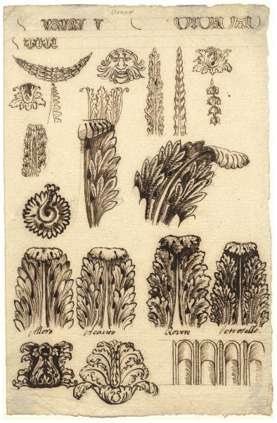 Elementi ornamentai da Vittone, Istruzioni elementari, 1760, tav. XLI e tav. XXXIV