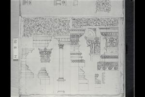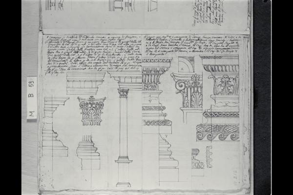 Studi di prospetti di capitelli, trabeazioni, modanature e di una colonna